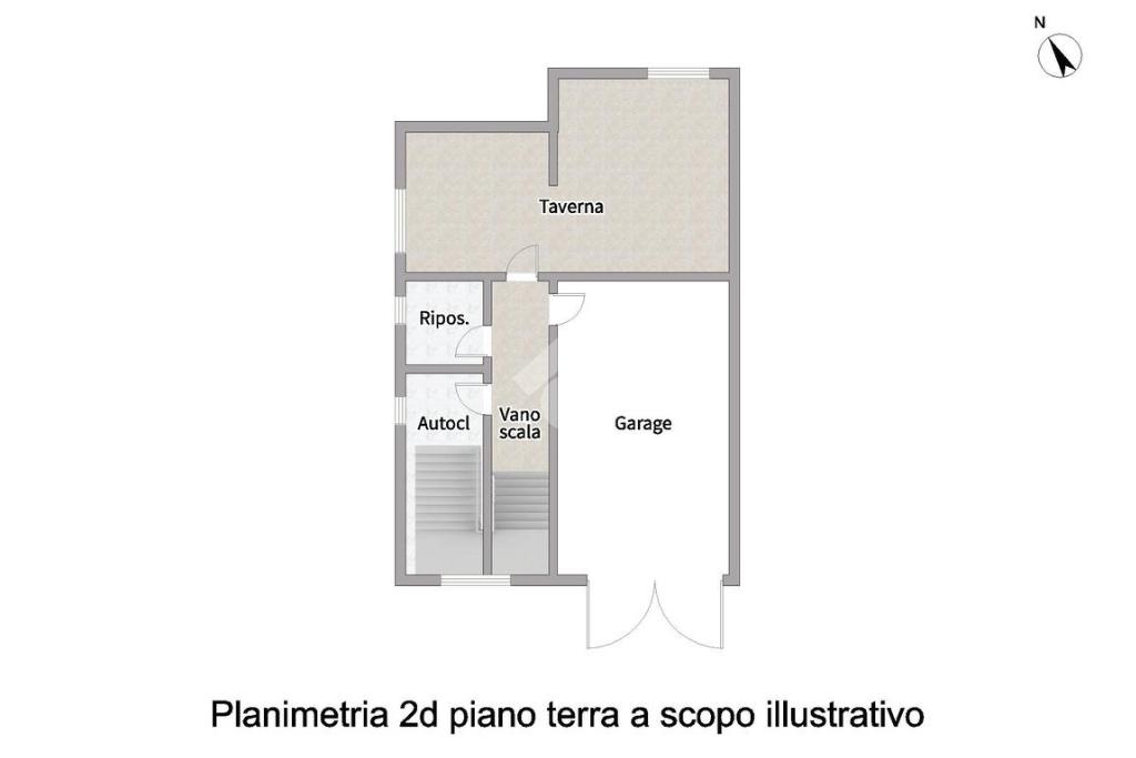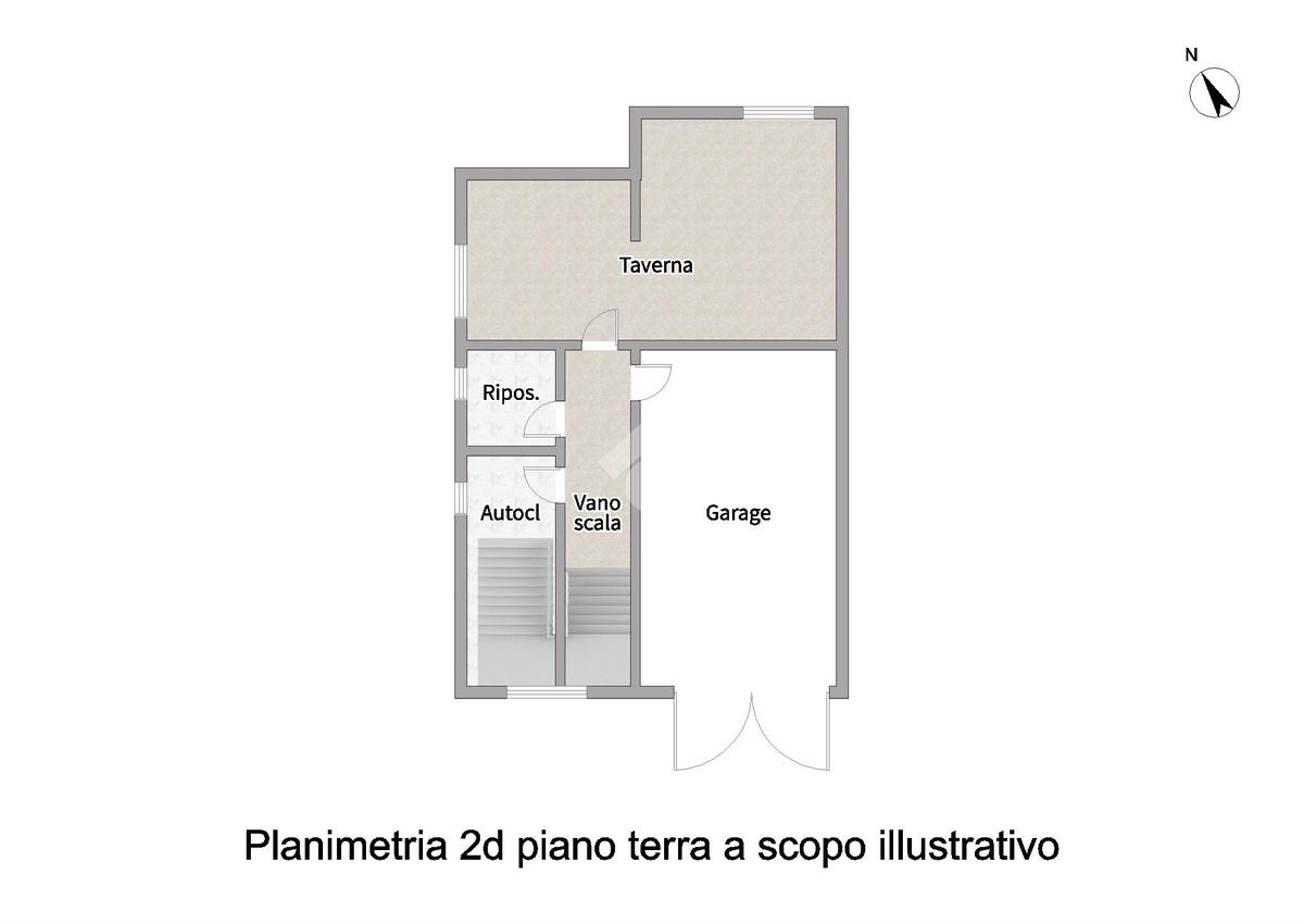 il piano terra con garage e taverna dotata di cucina e zona living, internamente collegato al resto dell’abitazione.