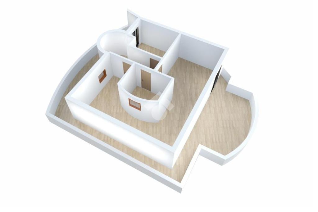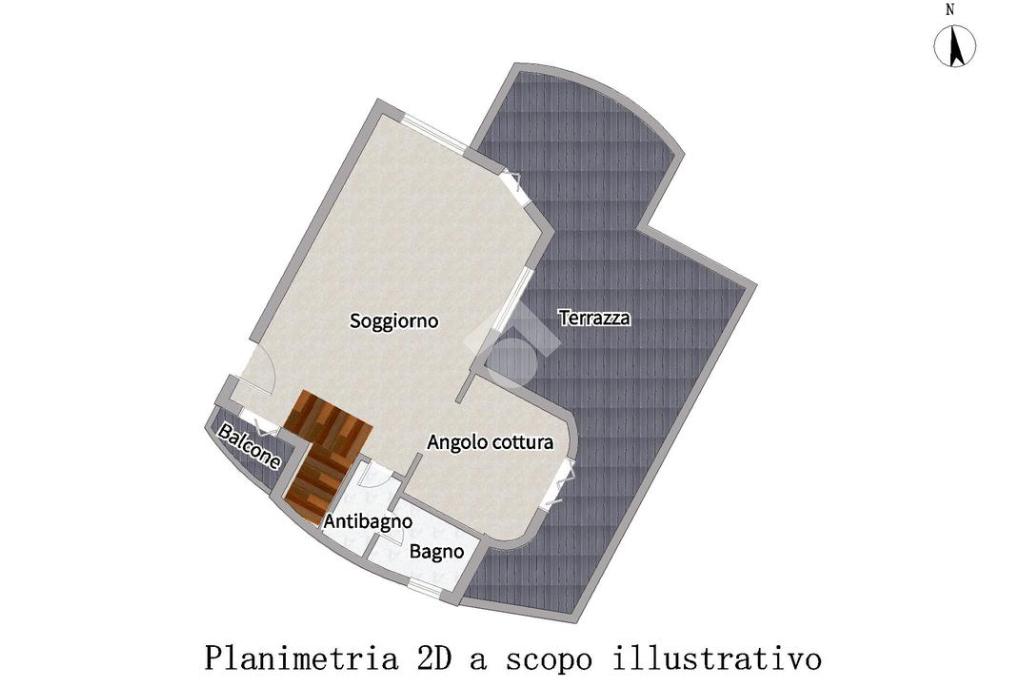 L’ingresso si apre su una zona giorno open space, con angolo cottura e doppia uscita su un terrazzo abitabile di 35 mq, ideale per pranzi all’aperto o momenti di relax. Sullo stesso livello è presente un bagno di servizio, rifinito con cura, con antibagno dotato di attacco per la lavatrice.