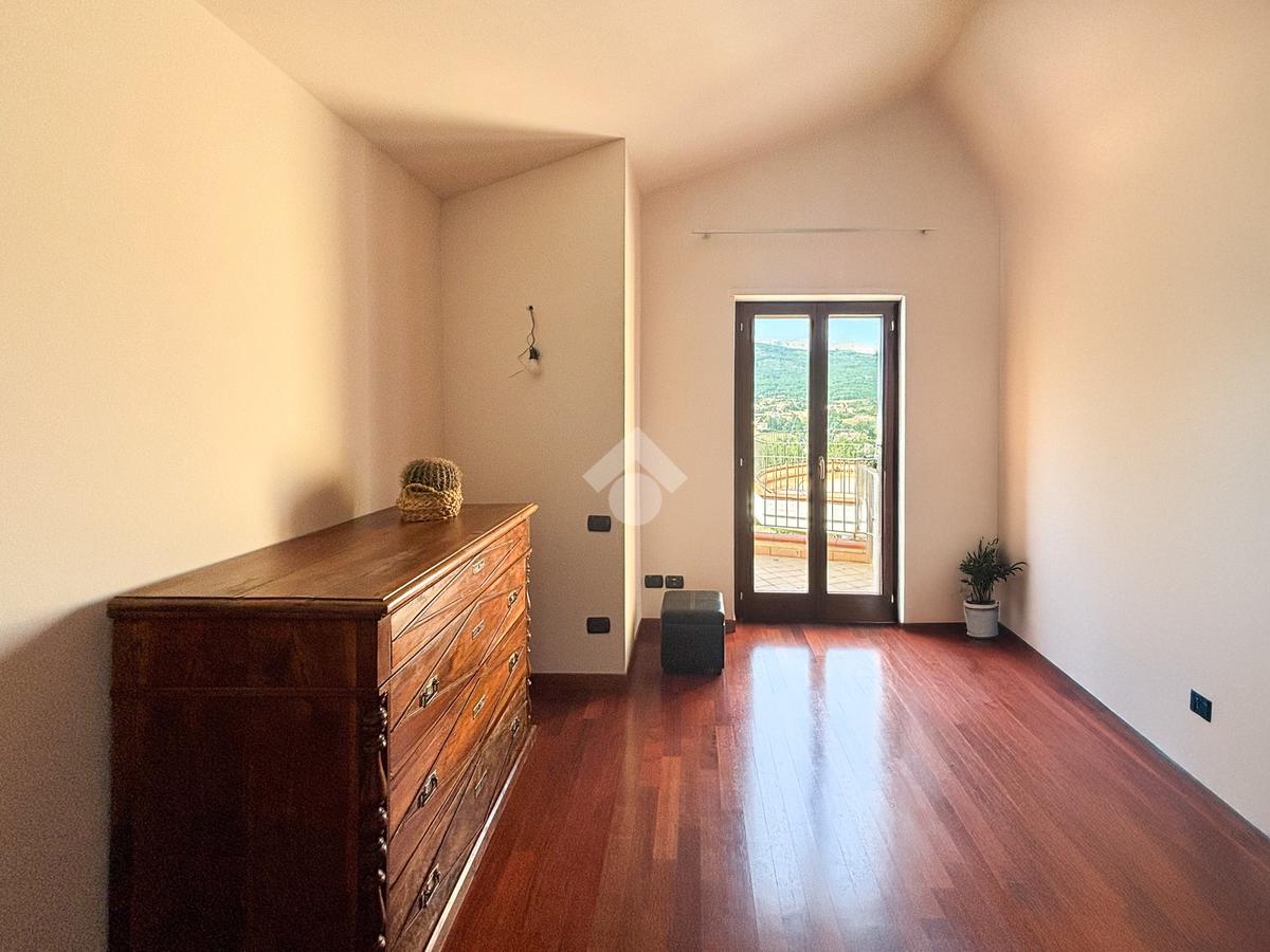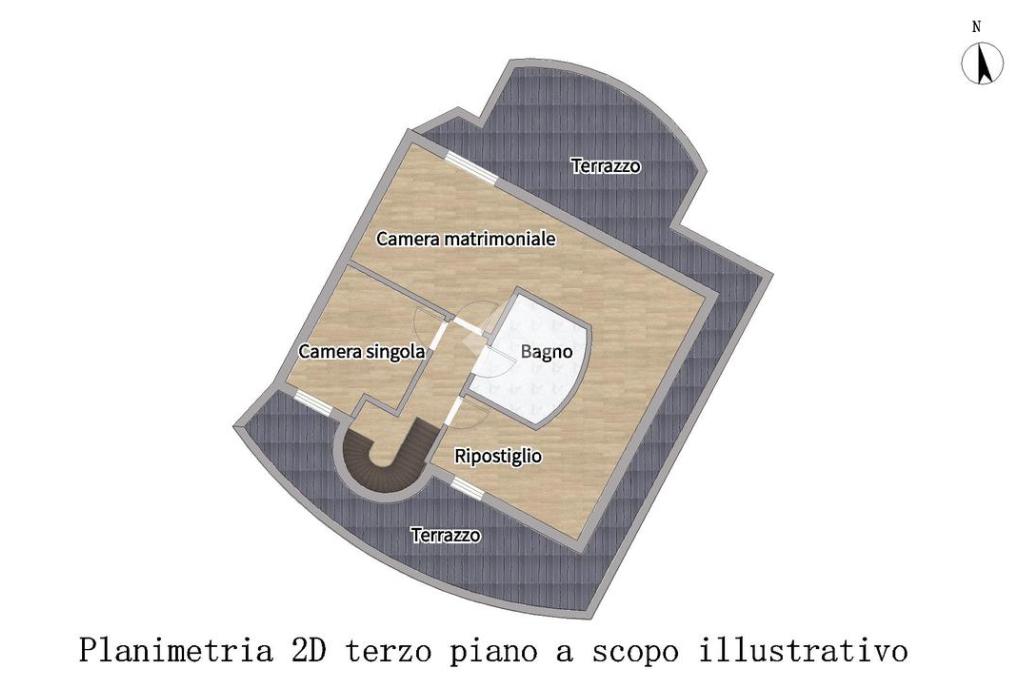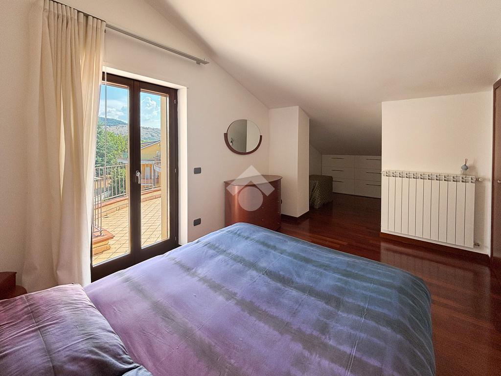 Al piano superiore si sviluppa la zona notte, composta da una camera matrimoniale, una camera singola, un bagno principale finestrato con vasca/doccia e un pratico ripostiglio. Anche questo piano è servito da un terrazzo abitabile perimetrale con vista aperta, accessibile dalle camere.