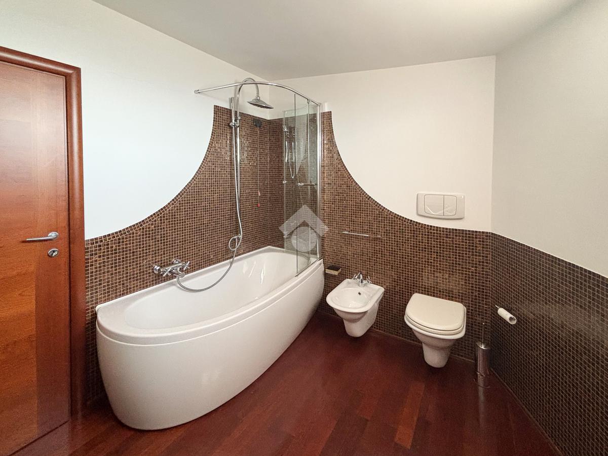 L’intero appartamento è rifinito con parquet in tutti gli ambienti, sia nella zona giorno sia nella zona notte, ed è dotato di infissi in doppio vetro e avvolgibili elettrici in tutte le finestre. La soluzione presenta anche la predisposizione per l'allarme.