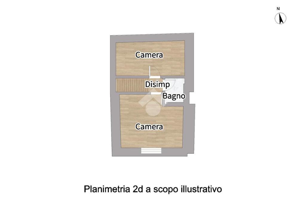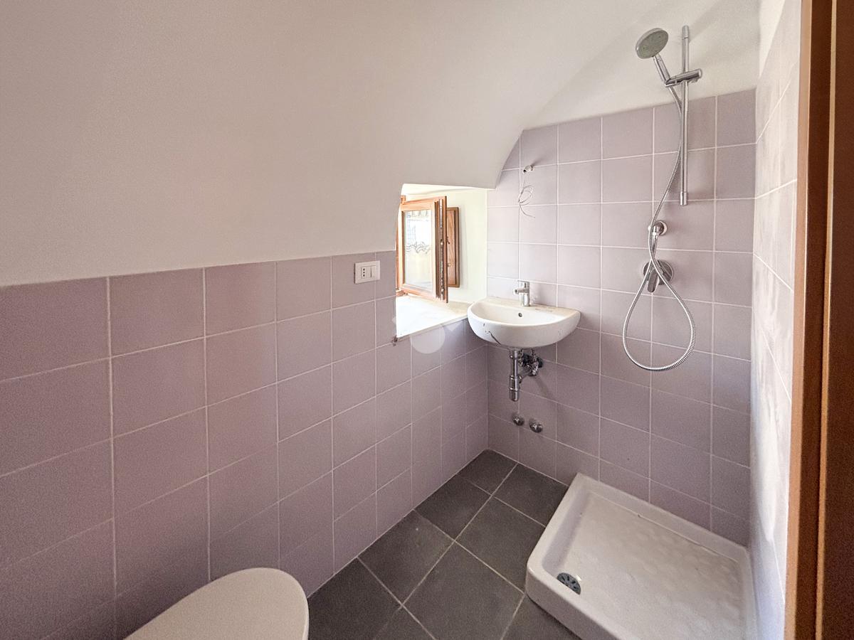 Il trilocale, disposto su due livelli, presenta al piano terra una zona giorno con angolo cottura e un comodo ripostiglio; al piano superiore due camere da letto e un bagno finestrato con doccia.