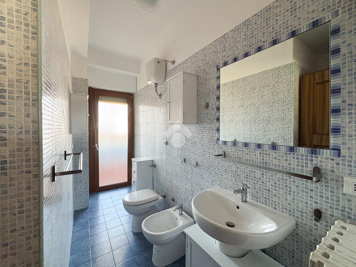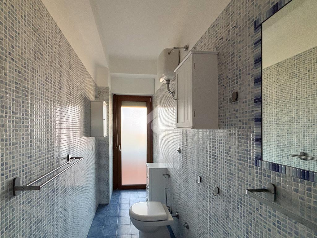 Nella stessa area troviamo il primo bagno finestrato, completo di box doccia.