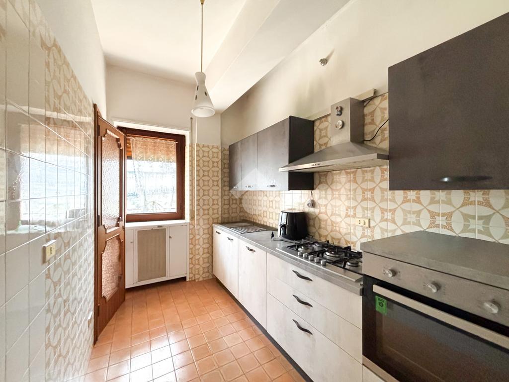 Tramite un comodo ingresso si accede al soggiorno con uscita sul terrazzo e alla cucina abitabile, dotata di ripostiglio e balcone.