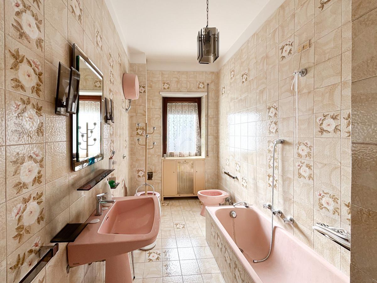 Un disimpegno conduce alla zona notte, composta da tre camere da letto, di cui due con accesso al balcone, e da due bagni finestrati: uno con doccia e attacco per la lavatrice, l’altro con vasca.