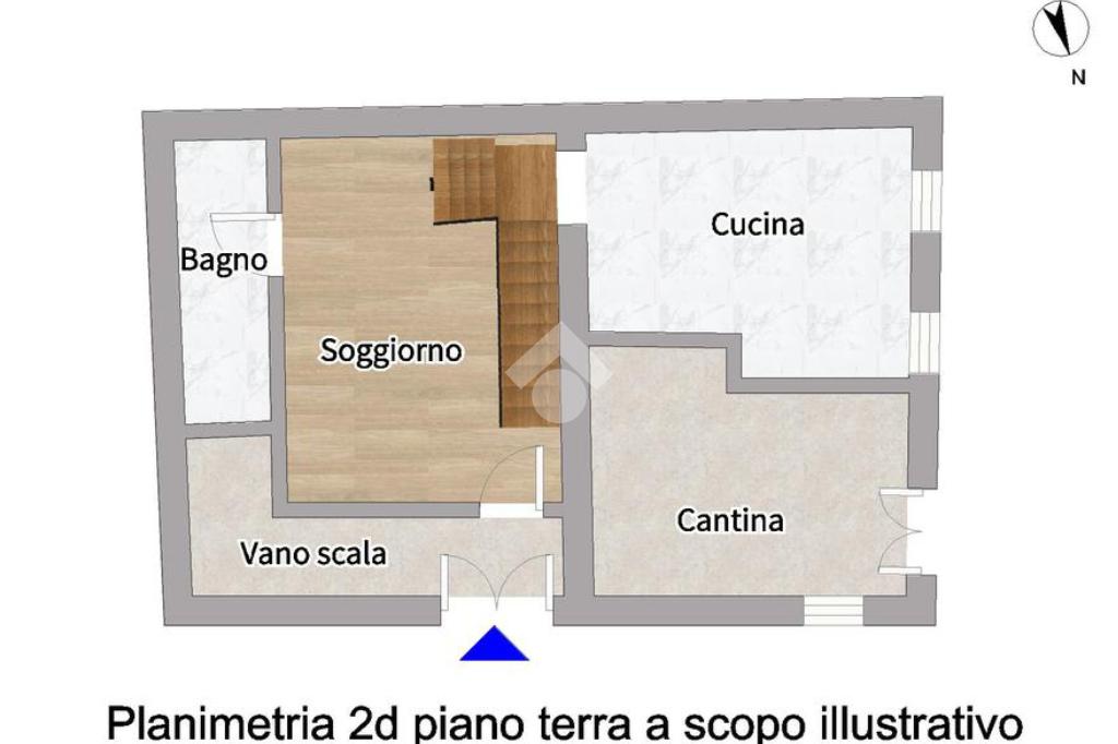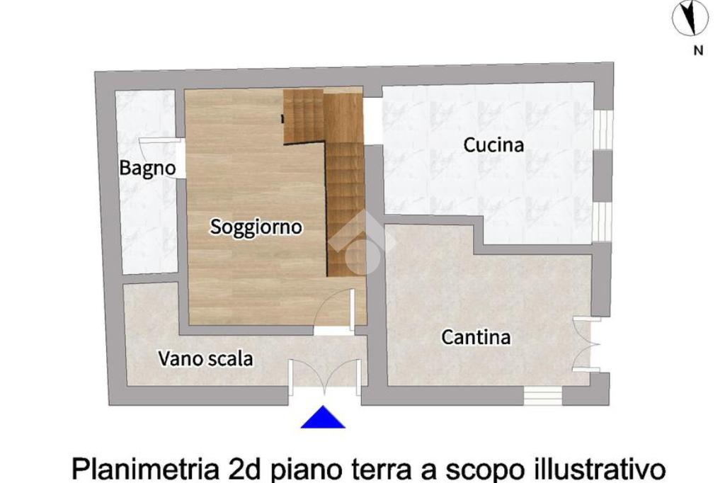 Il piano terra, con ingresso autonomo, ospita un soggiorno, una cucina separata abitabile e un bagno completo di doccia.