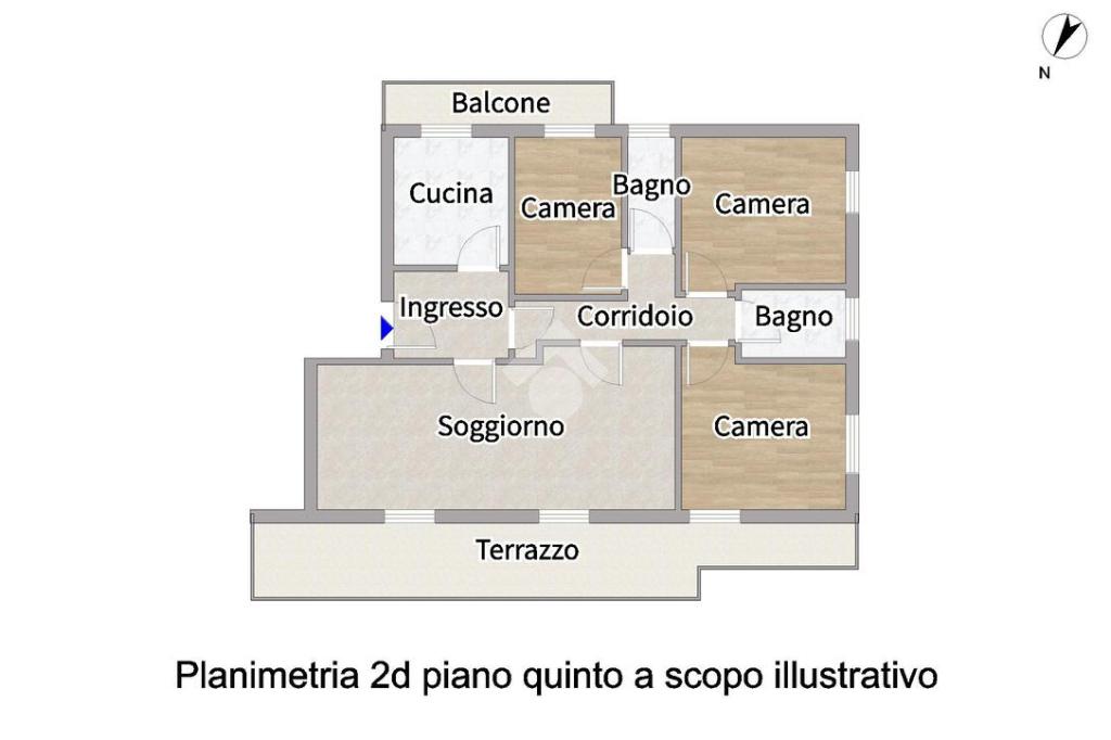 Un corridoio distribuisce la zona notte composta da tre camere da letto di cui due matrimoniali e una singola con uscita sul balcone condiviso con la cucina e due bagni: uno di servizio, con attacco per la lavatrice, e uno completo di doccia, entrambi finestrati.