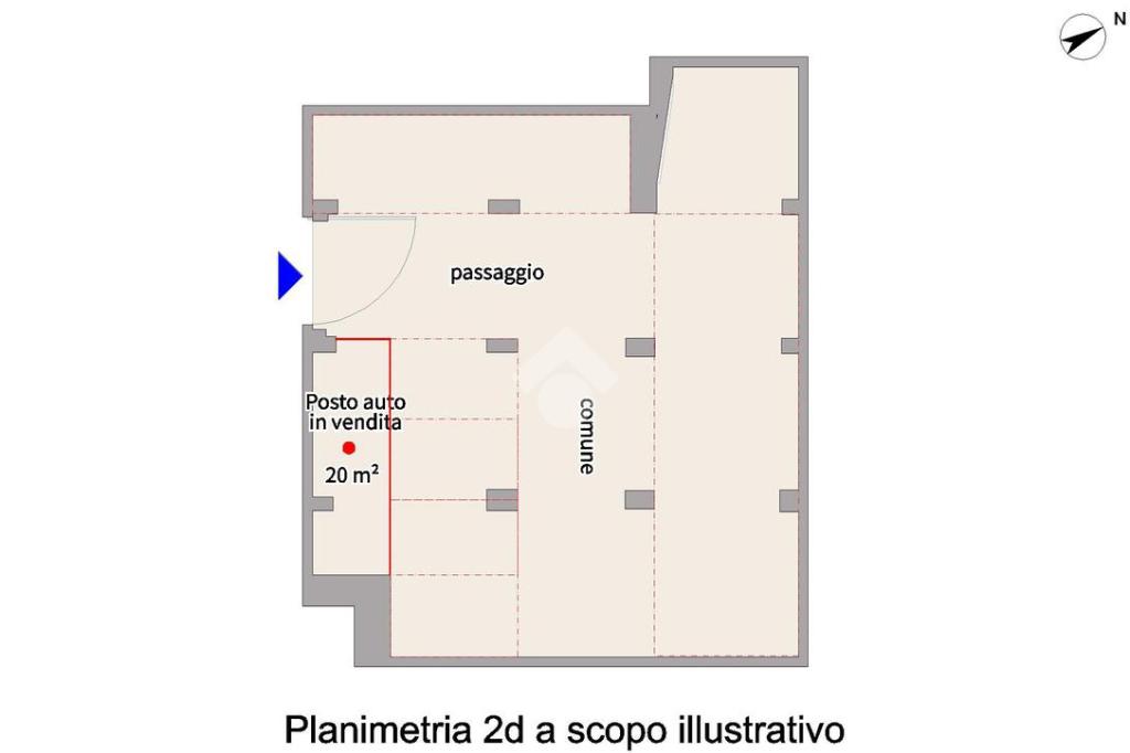 In Via Strinella, a due passi dal centro storico, si propone in vendita posto auto coperto di 20 mq, in garage condominiale sito al piano terra.