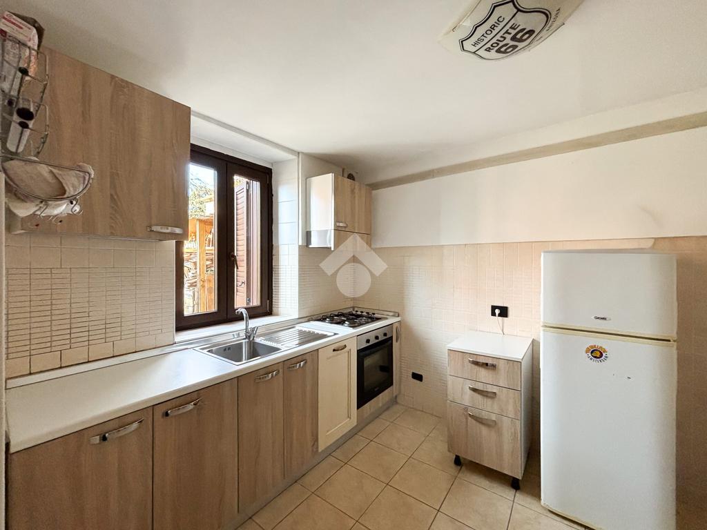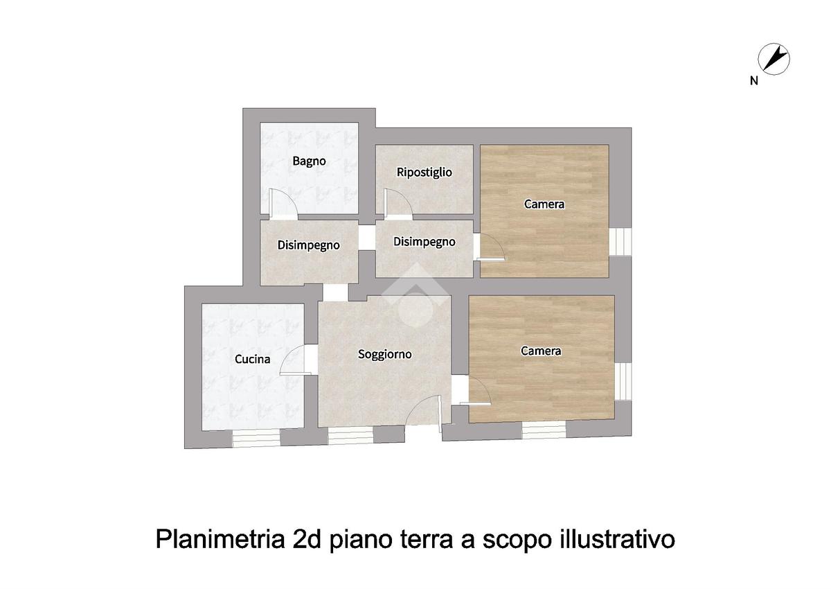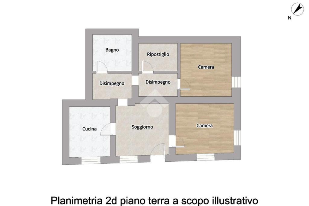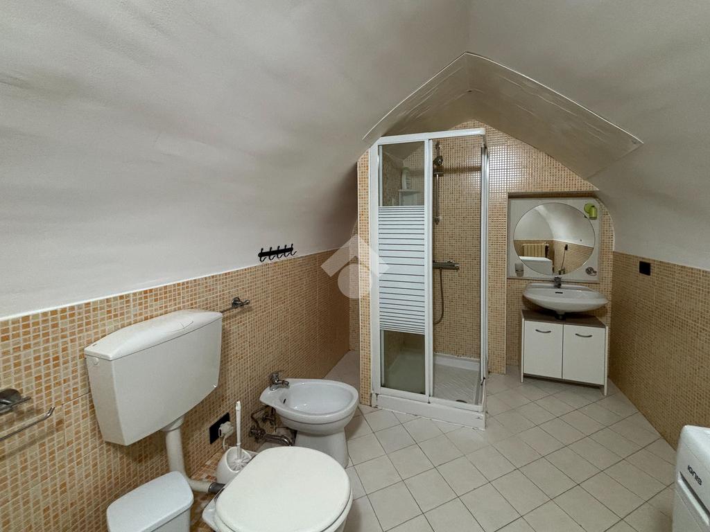 Al piano terra il trilocale è composto da: ingresso su soggiorno, cucina abitabile, due camere da letto, un bagno con doccia e un comodo ripostiglio.