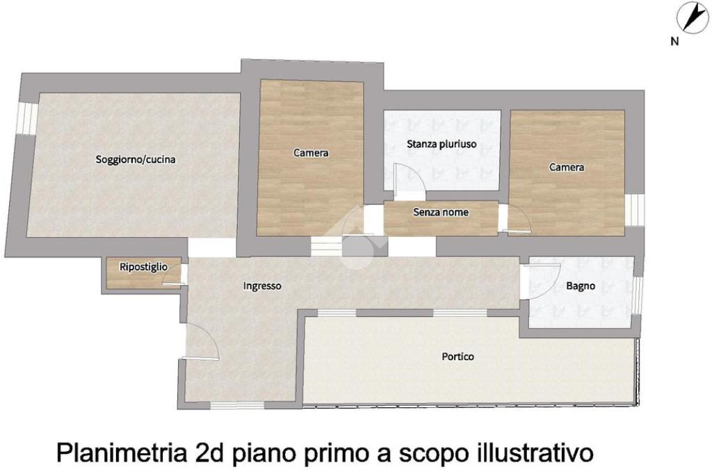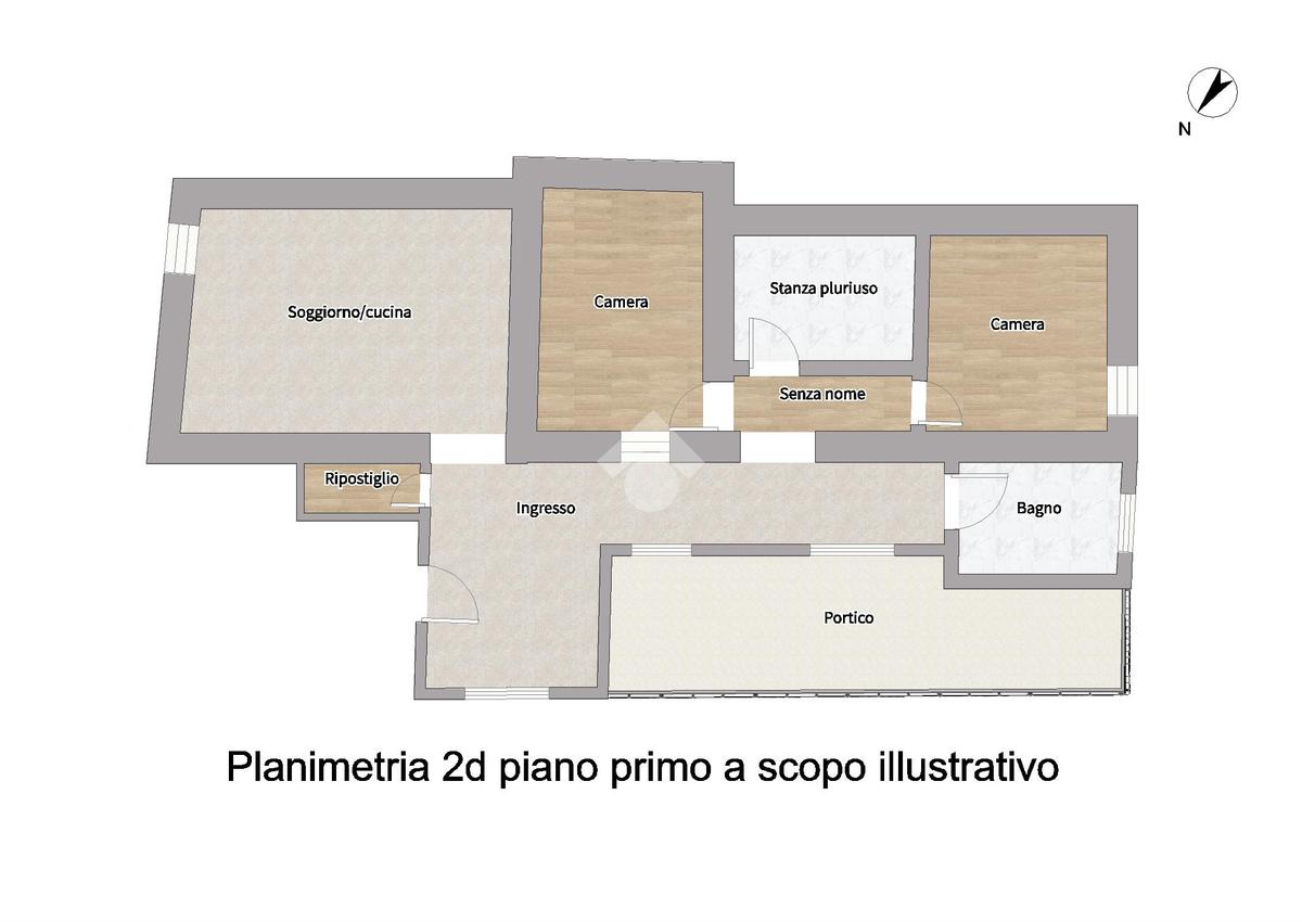 Al piano primo, il trilocale con zona giorno in open space con cucina a vista, una camera matrimoniale, una camera singola, una stanza pluriuso e un bagno completo di doccia e finestrato. L'appartamento gode anche di un terrazzo privato.