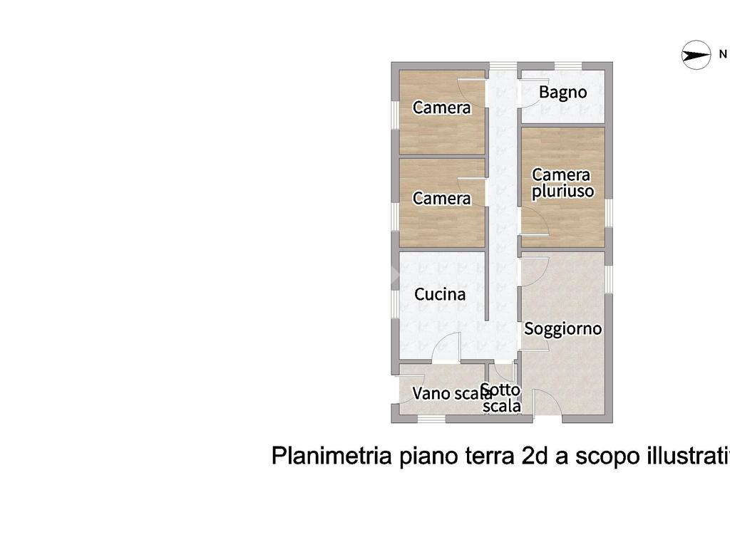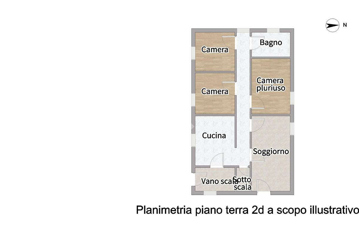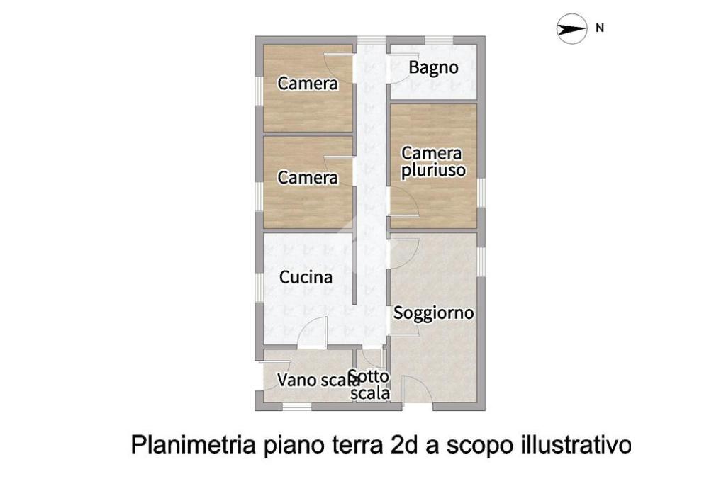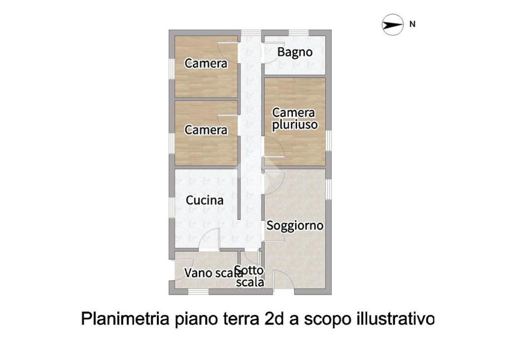 L'appartamento al piano terra è composto da: ingresso su soggiorno, cucina abitabile, due camere da letto matrimoniali, un bagno con vasca e finestrato e un'ulteriore stanza utilizzabile come terza camera.