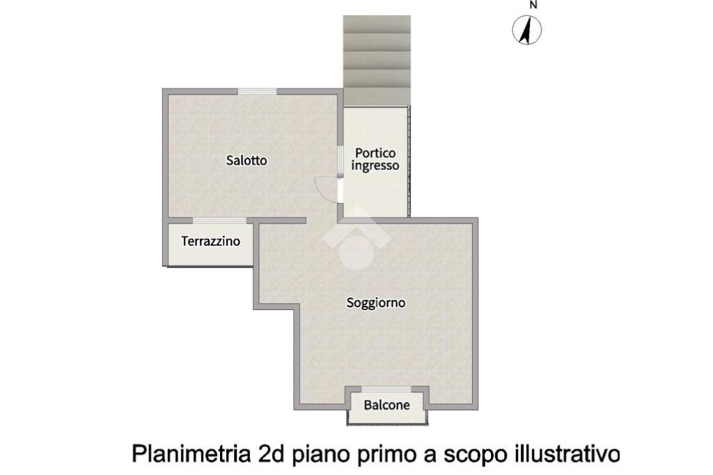 L’ingresso al piano primo si apre sul salotto con terrazzino e su un secondo ambiente soggiorno, esposto a sud e dotato di balcone.