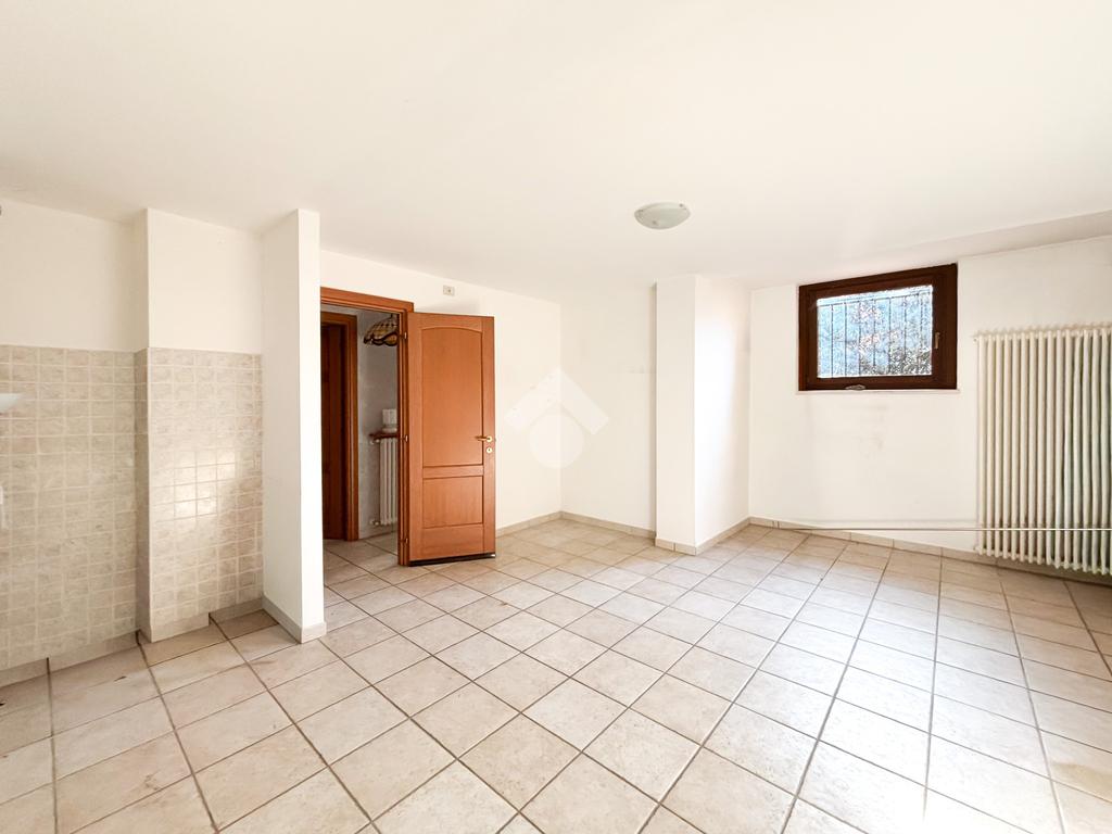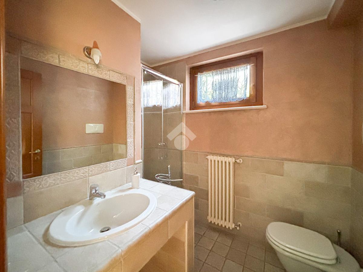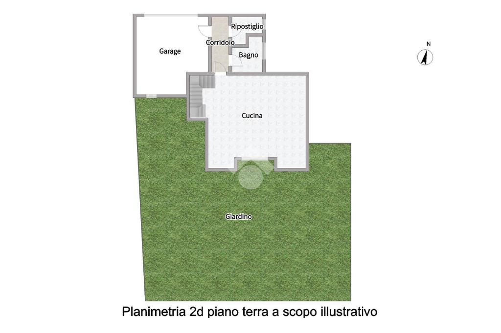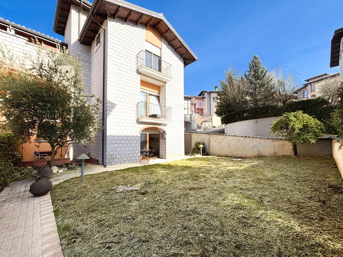 Al piano terra sono presenti la cucina con zona pranzo con camino e accesso diretto al giardino privato con angolo barbecue, un bagno finestrato con doccia a servizio della zona giorno, un ripostiglio e il garage con collegamento interno.