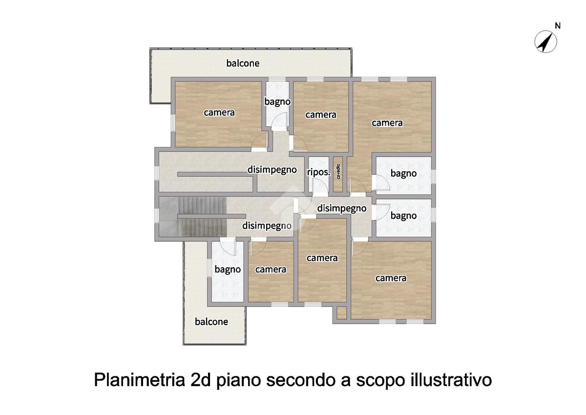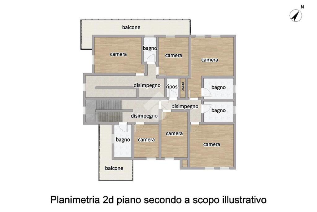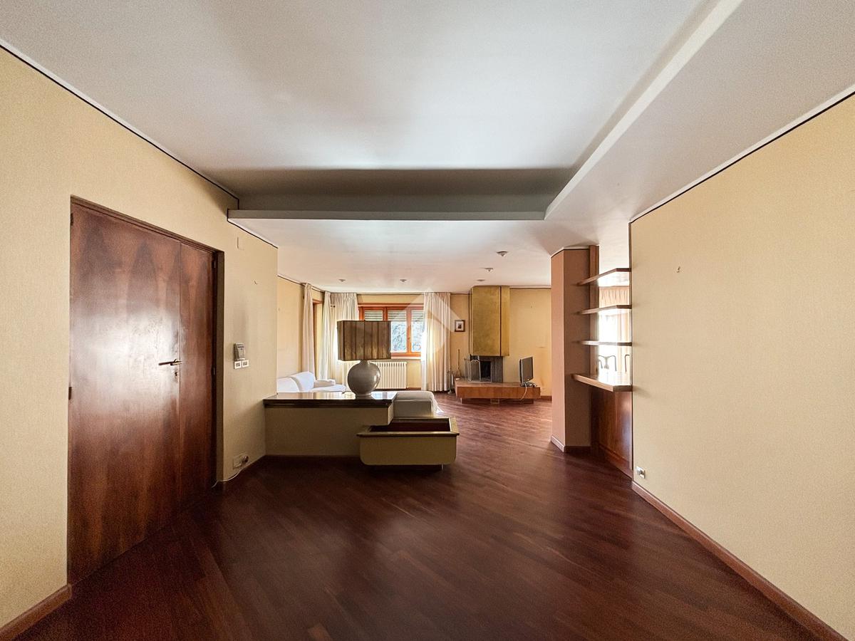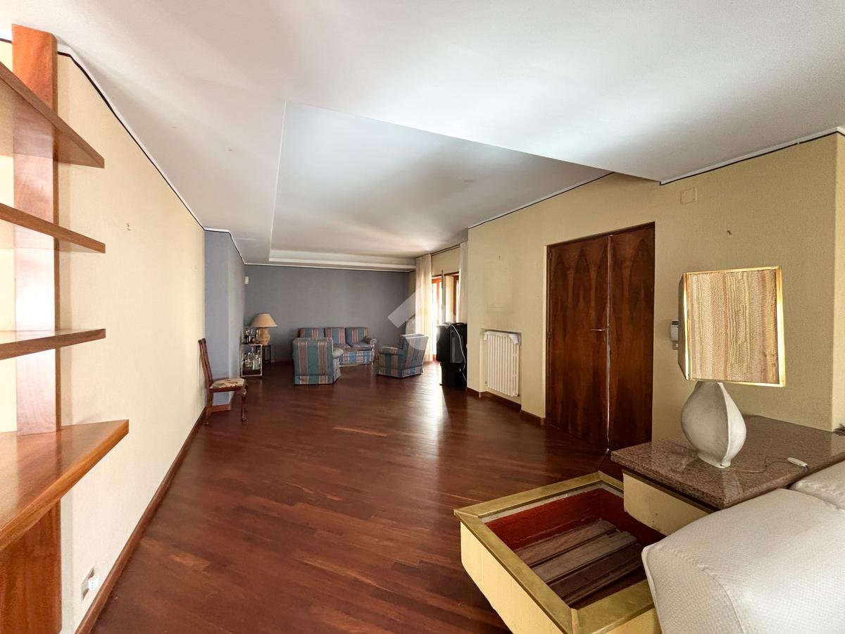 Il secondo appartamento, di metratura maggiore, si sviluppa sull'altra metà della villa con ingresso al primo piano dal lato frontale. Si compone di soggiorno con zona pranzo, bagno di servizio e cucina separata con accesso al terrazzo; al piano superiore la zona notte comprende quattro camere e tre bagni finestrati. Completa l'unità una terrazza privata al piano terzo.
