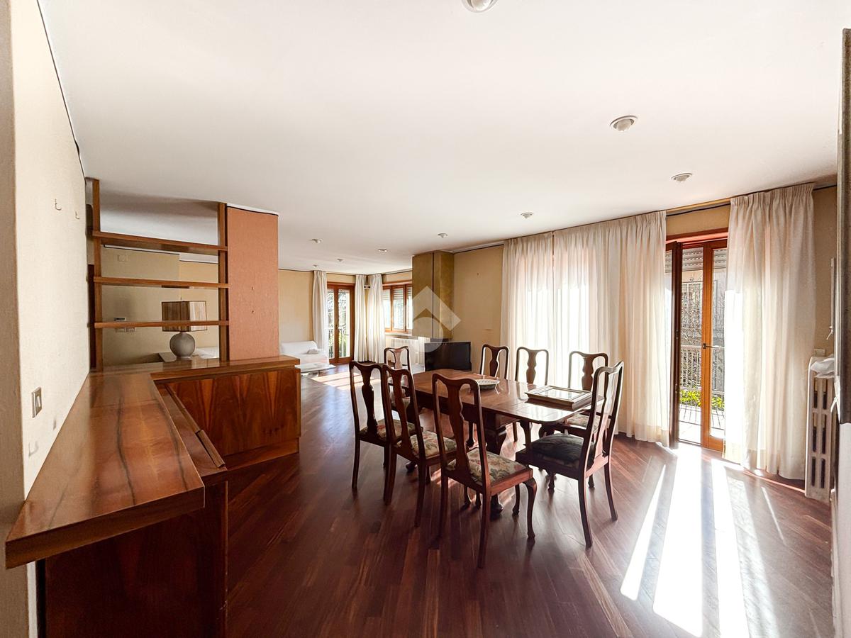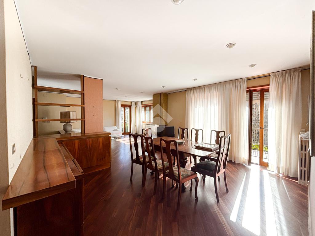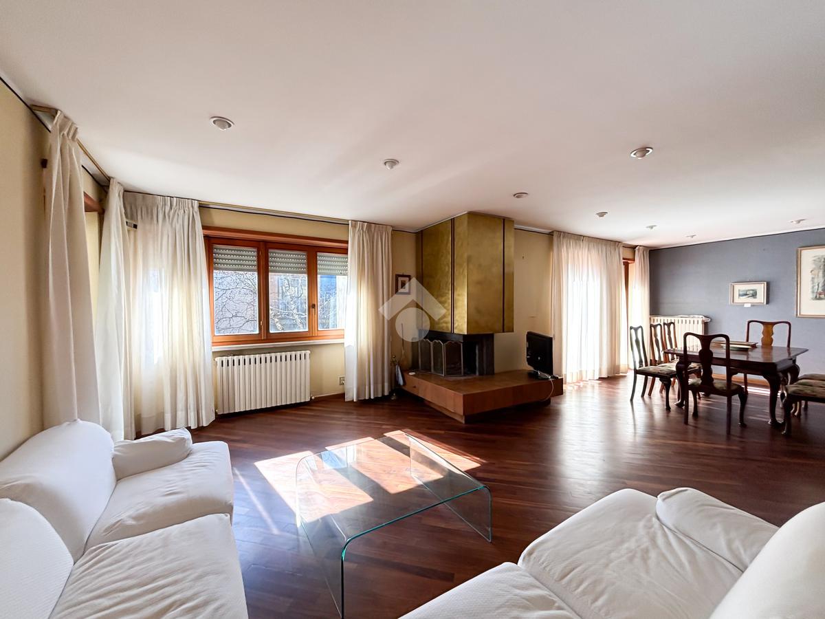 Il secondo appartamento, di metratura maggiore, si sviluppa sull'altra metà della villa con ingresso al primo piano dal lato frontale. Si compone di soggiorno con zona pranzo, bagno di servizio e cucina separata con accesso al terrazzo; al piano superiore la zona notte comprende quattro camere e tre bagni finestrati. Completa l'unità una terrazza privata al piano terzo.